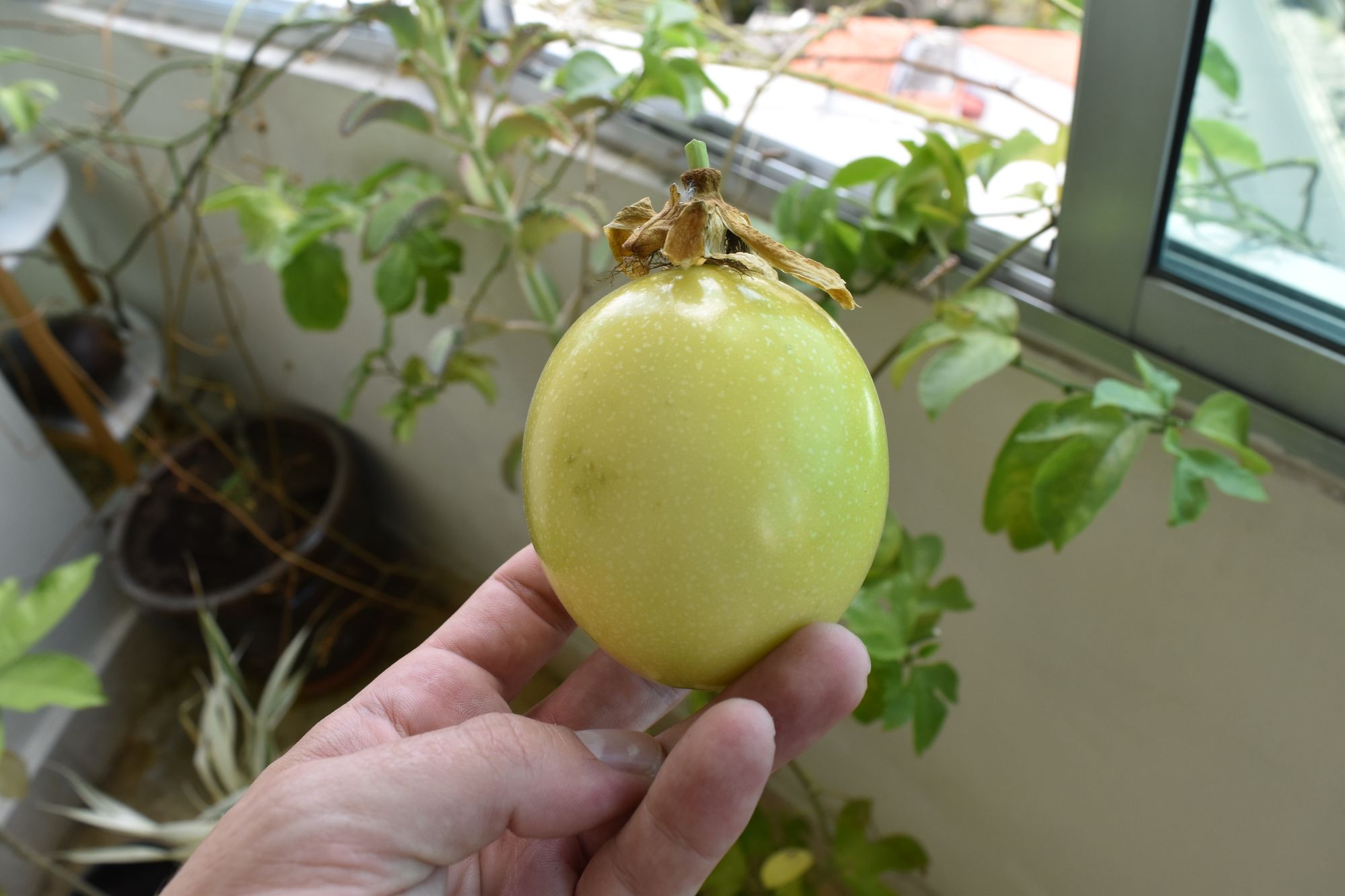 A couple of years later I found myself in Brazil getting to know Passiflora edulis forma flavicarpa by having them for breakfast every morning. Those flavicarpas sold in a small grocery store in Cruz das Almas, Bahia, are the largest flavicarpas I've seen to date. They must have been hand pollinated.